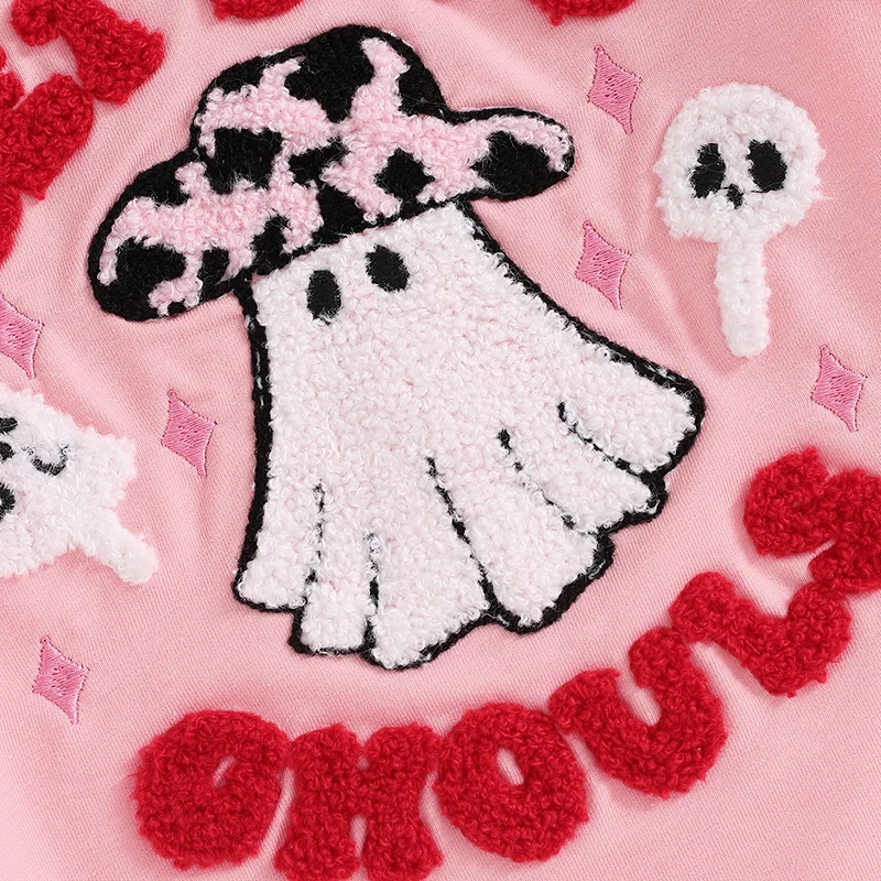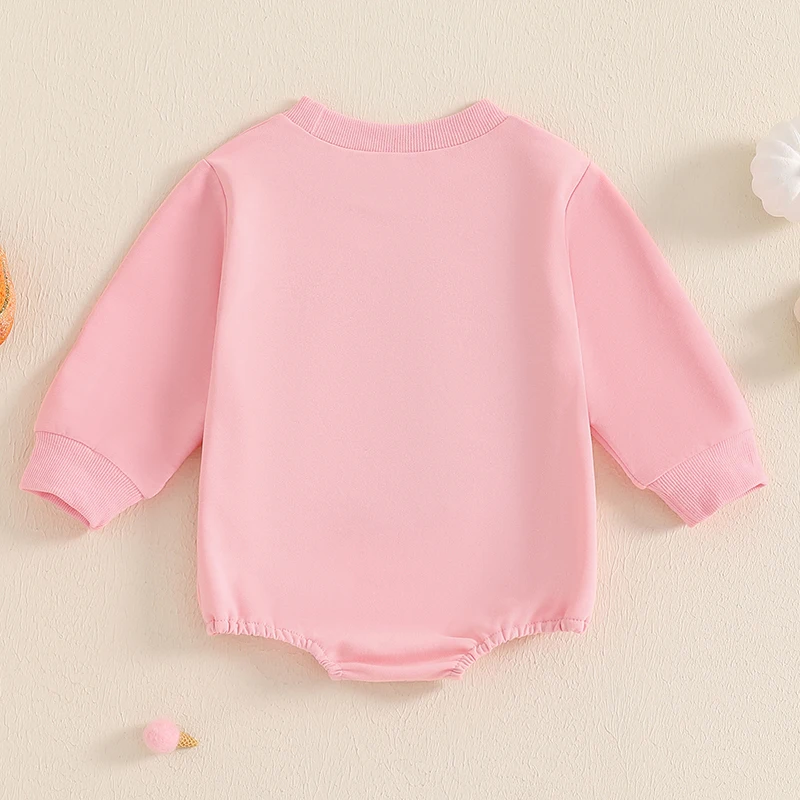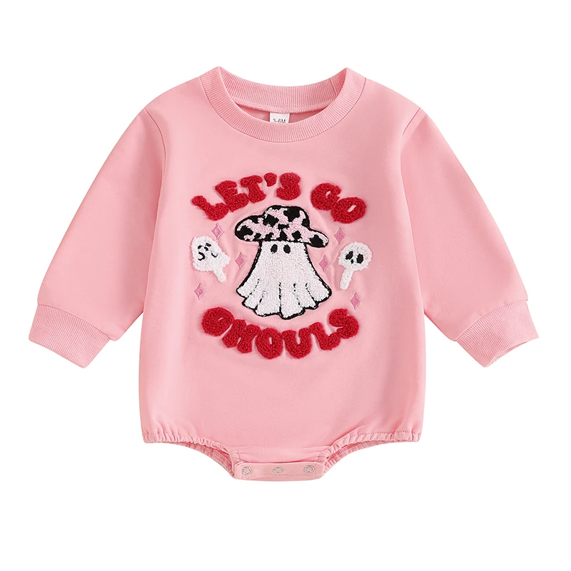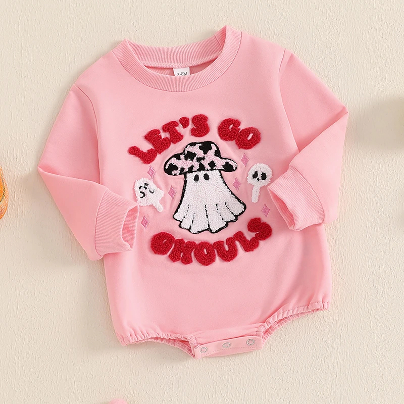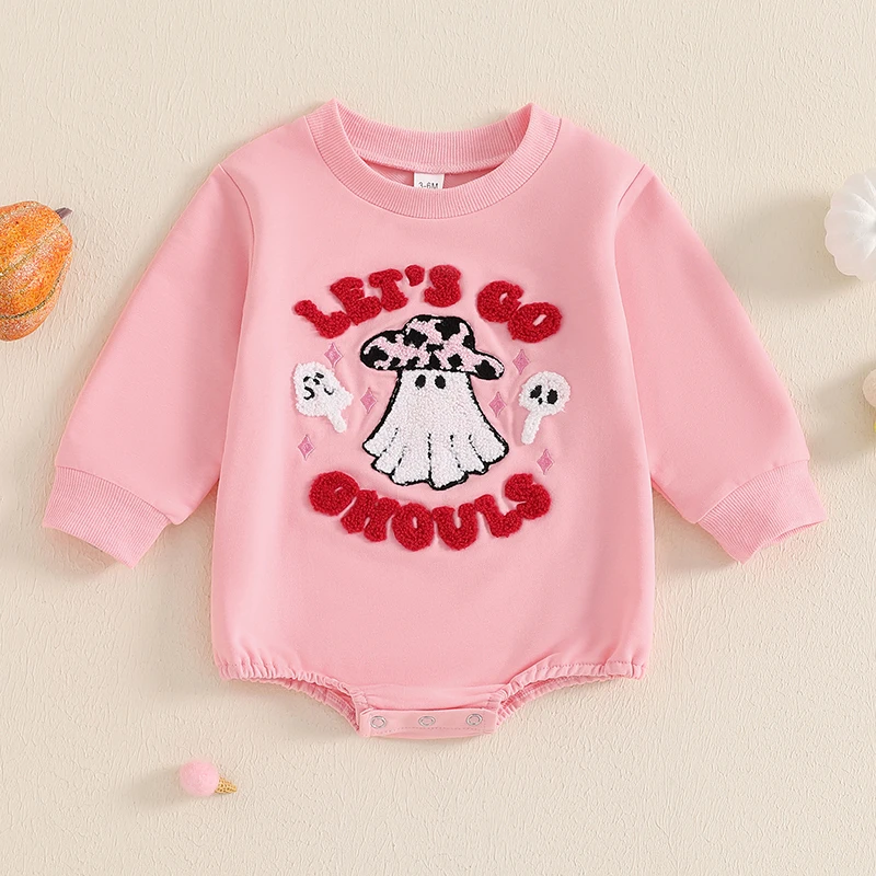 Baby Girls Halloween Romper Letter Ghost Embroidered Long Sleeve Round Neck Fall Bodysuits Jumpsuits