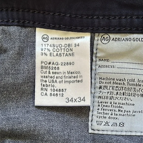 From AG -A tailored straight-leg cut that is slim with a mid-rise waist, relaxed through the hip and thigh, and tapered from the knee to the ankle. Light fading along seams no holes or stainsPlease see images for details and measurements for a perfect fit Measurement slaying flat Waist 18 1/2 inches Rise 10.5 inches Length 40.5 inches inseam 30.5 inches A238