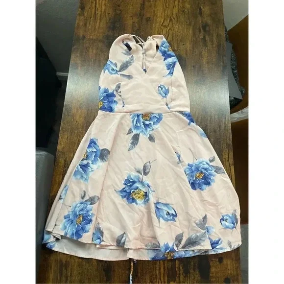 Lulus Garden Walk Blush Pink Floral Print Lace-Up Skater DressSize Small Retail $70Out of stock on website Dance gracefully through the flowers in the Lulus Garden Walk Blush Pink Floral Print Lace-Up Skater Dress! floral print adorns blush pink woven fabric as it shapes a sleeveless, princess seamed bodice with a surplice neckline and fun lace-up back. Fitted waist flows into a full skater skirt. Hidden back zipper.Fully lined.Self: 100% Polyester. Contrast: 100% Polyester. Lining: 100% Polyester.Hand Wash Cold. Do Not Bleach. Line Dry. Iron Low Heat.SKU 7